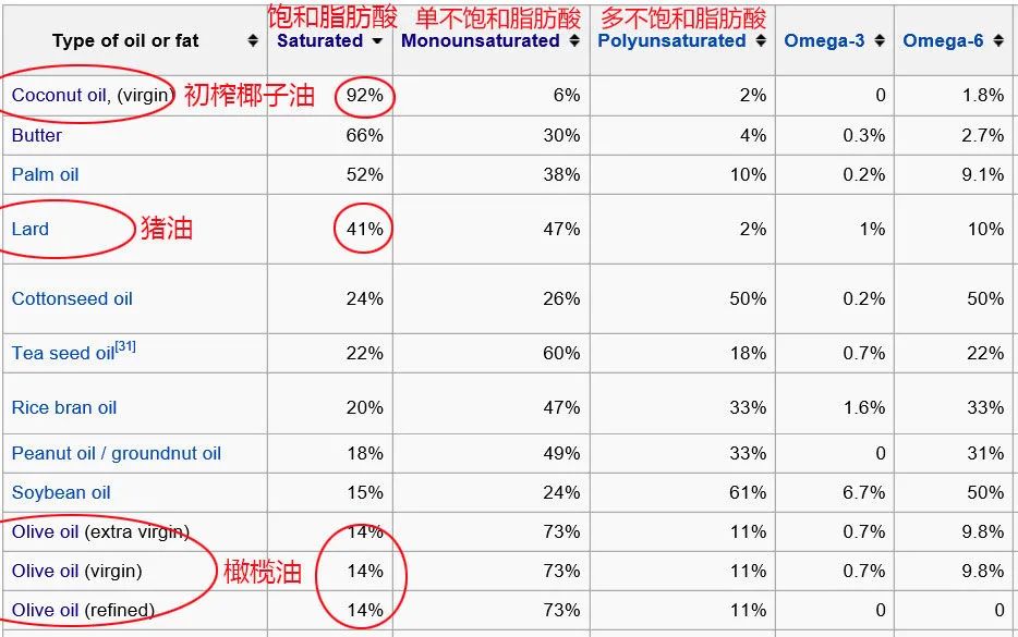 橄欖油之所以被認為是健康的油,就是因為其不飽和脂肪酸含量非常高(86%)。而椰子油則相反,飽和脂肪酸高達91%,是豬油中含量的兩倍!